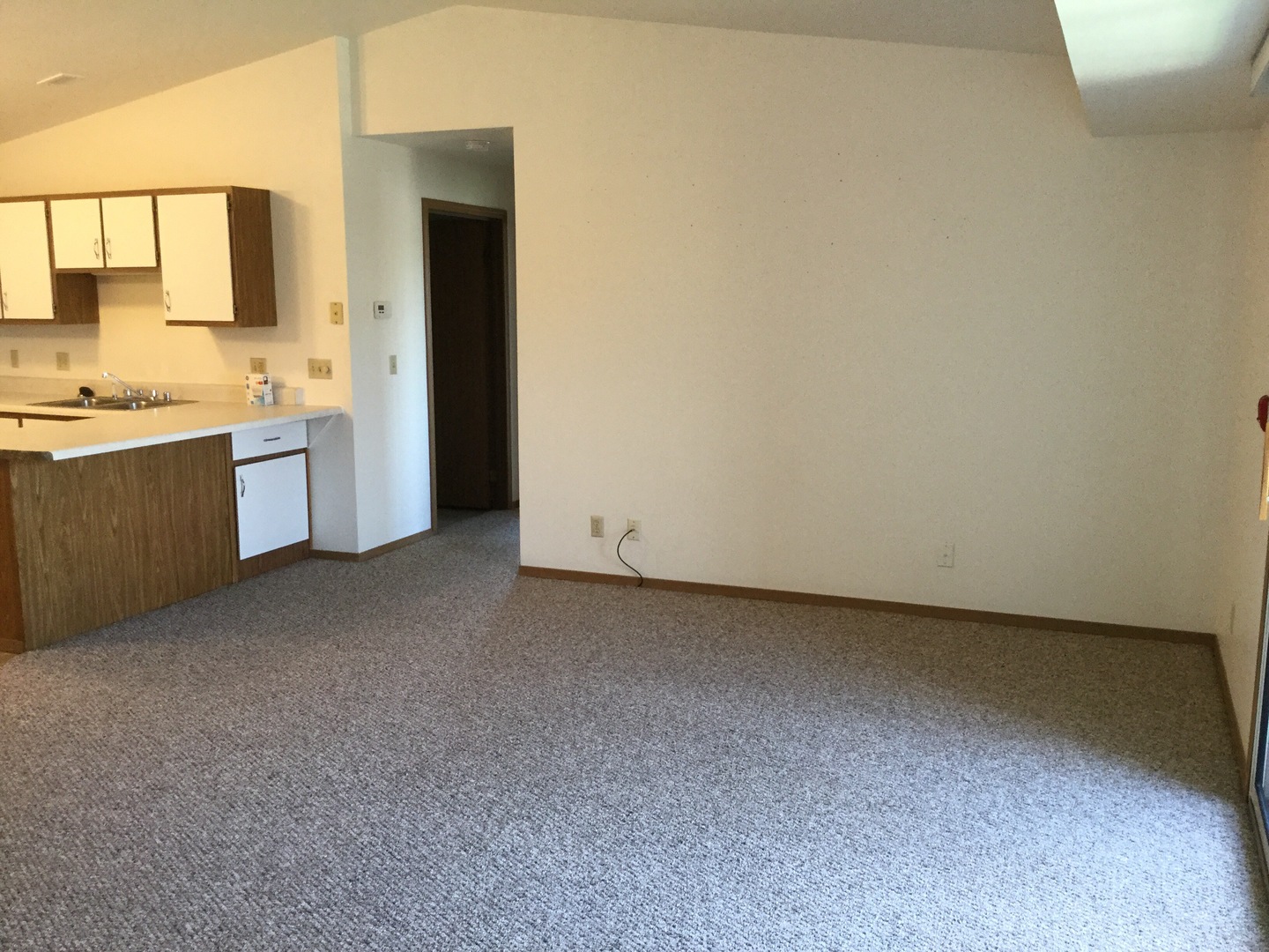 This upper has an open concept living/dining/kitchen with vaulted ceilings and a very large living room. Two bedrooms with double closets in the master, one bath with linen closet and garage. This apartment faces south/west and has a sunlit balcony.