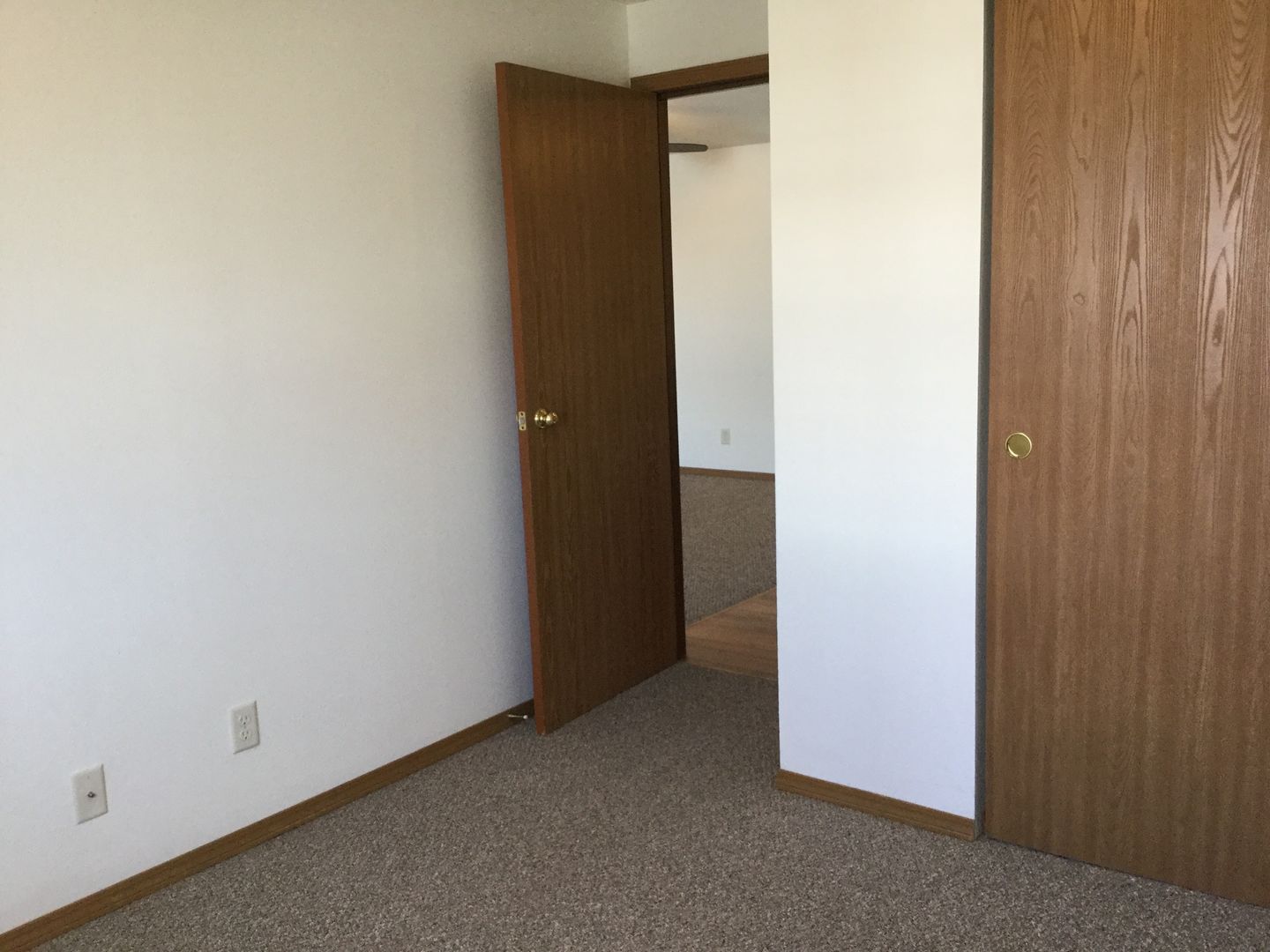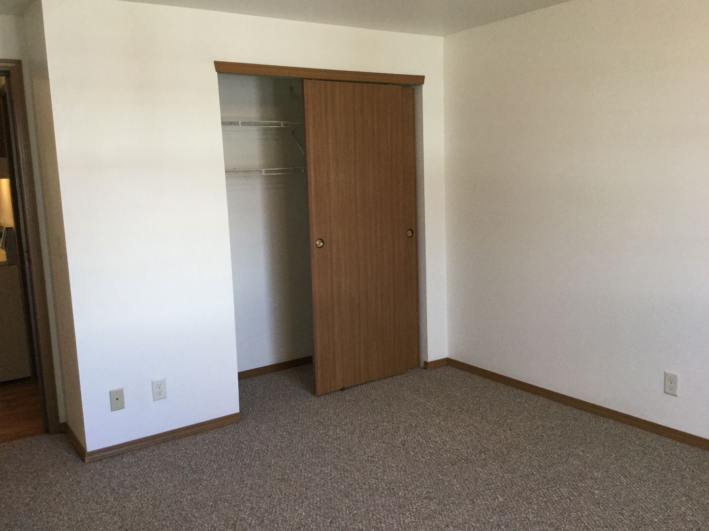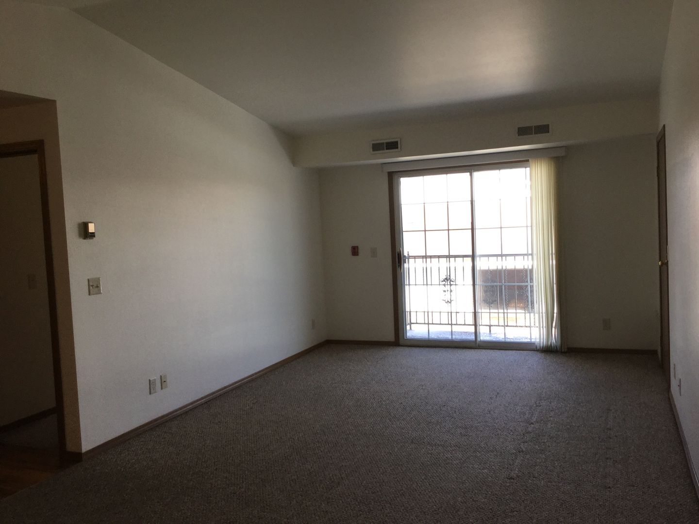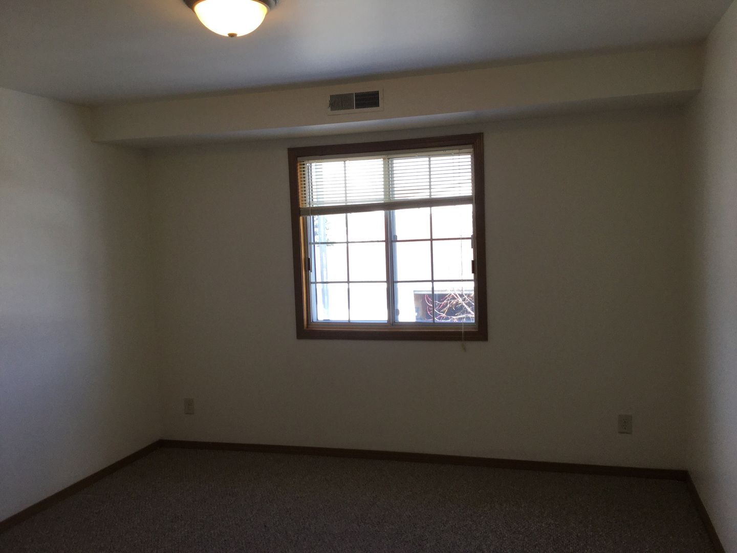 The apartment has a living/dining combination with vaulted ceiling, two bedrooms, one bath and garage.